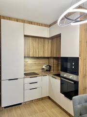 Переносили положение встраемового кухонного гарнитура, чтобы сделать кухню — гостиную, без перепланировки.