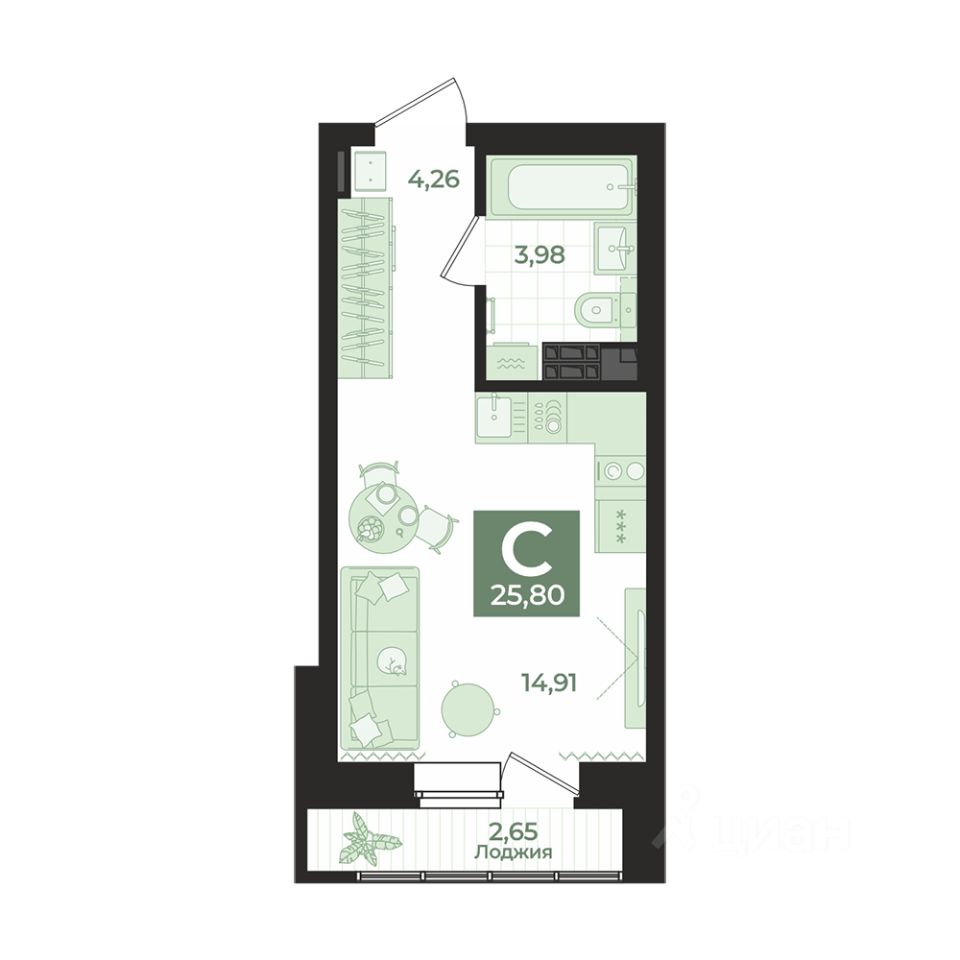 Общая площадь25,8 м²