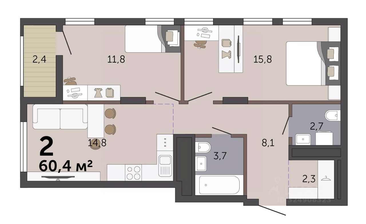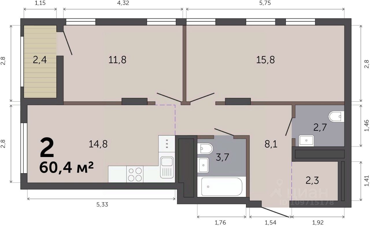 60,4 м²