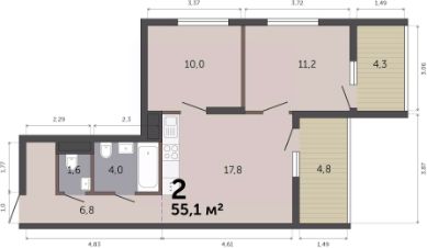 Общая площадь55,1 м²