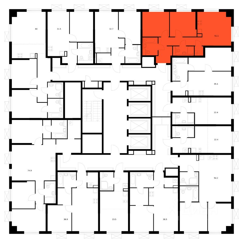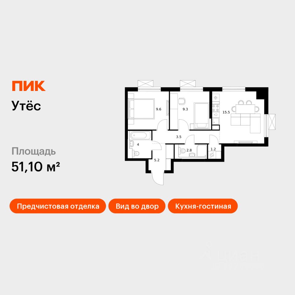 Продаётся 2-комн. квартира площадью 51,1 кв.м на 29 этаже 29 этажного дома (Корпус 6, Секция 1) проекта ПИК Утёс. Светлый просторный подъезд на уровне земли, функциональная планировка, большие окна, предчистовая отделка.