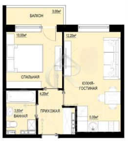 Жилая площадь составляет 22.2 квадратных метра, что предоставляет достаточно места для комфортного проживания. Кухня площадью 5 квадратных метров ждёт вашего дизайнерского решения и кулинарных экспериментов. Квартира оснащена застекленной лоджией, откуда открывается приятный вид на двор, позволяя наслаждаться свежим воздухом без выхода из дома. В квартире много солнца.
