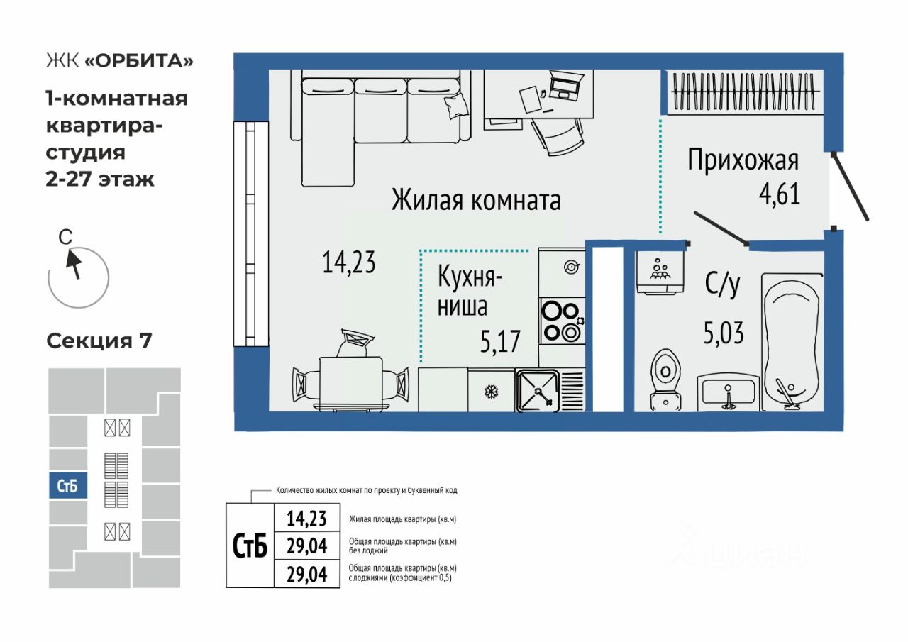 Общая площадь29,04 м²