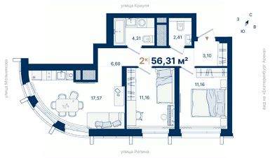 Общая площадь56,31 м²
