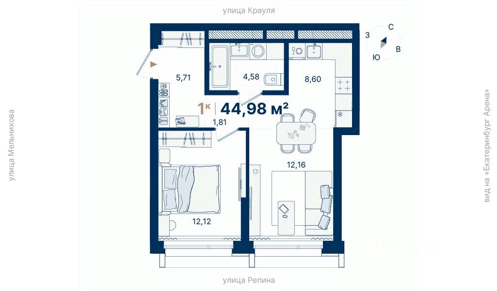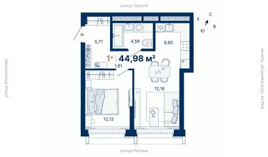 Общая площадь44,98 м²