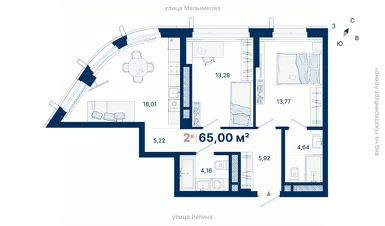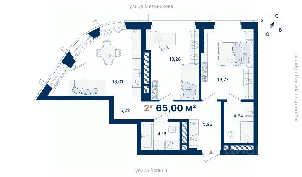 Дома расположены на стрелке улиц Репина и Крауля, рядом со стадионом "Екатеринбург Арена". Здесь уже есть все необходимое для жизни: сады, школы, поликлиники и магазины.