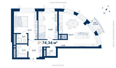 Общая площадь74,34 м²