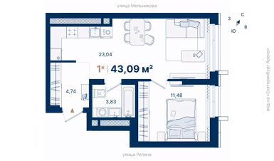Дома расположены на стрелке улиц Репина и Крауля, рядом со стадионом "Екатеринбург Арена". Здесь уже есть все необходимое для жизни: сады, школы, поликлиники и магазины.
