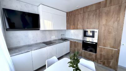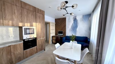 Гарнитур на заказ из австрийских материалов, фурнитура Blum, встроенная техника Maunfeld (варочная поверхность, вытяжка, духовой шкаф, микроволновая печь, посудомоечная машина), встроенный холодильник Whirlpool. В рабочей зоне тёплый пол. Два вида освещения, люстра + точечные светильники с регулировкой яркости света. Диван раскладывается в доп. спальные места.