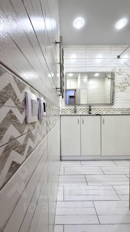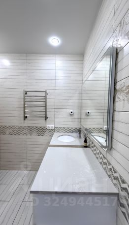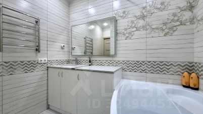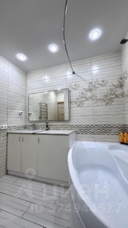 Тёплый пол. Большая ванна. Тумба с каменной столешницей, встроенная стиральная машина. Большое зеркало с диодной подсветкой. Качественная европейская сантехника.