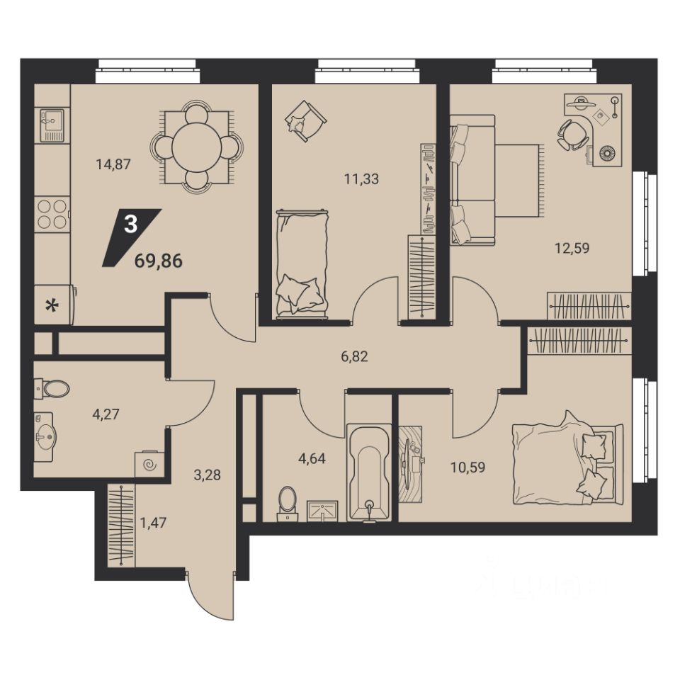 Функциональные студии, просторные 2-х и 3-х комнатные, практичные евро- планировки - каждый найдет себе квартиру по душе.