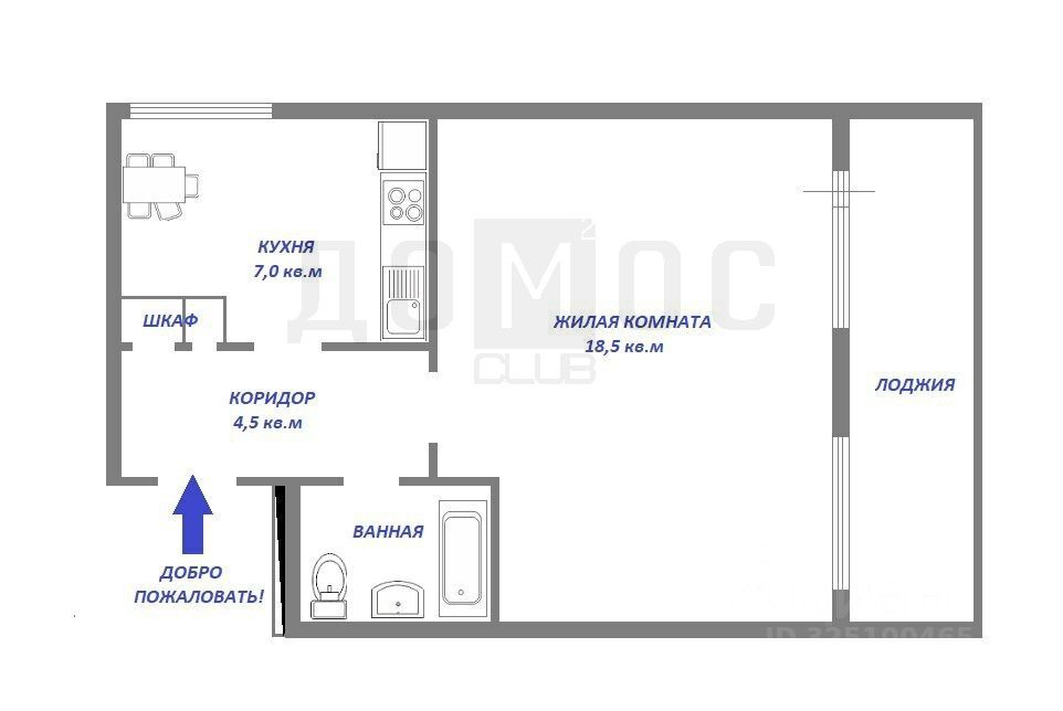 Преимущества: большая лоджия, просторная планировка, светлая комната.