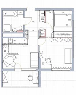 •Функциoнал компактной трех комнатной квартиры (кухня-гостиная, спальня, детская)