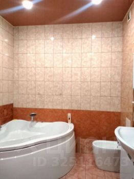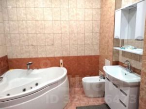 Санузел совмещённый — 12 кв м! Стены, пол — кафель. Установлены унитаз, раковина, биде, раковина со шкафчиком, угловая ванна с гидромассажем.