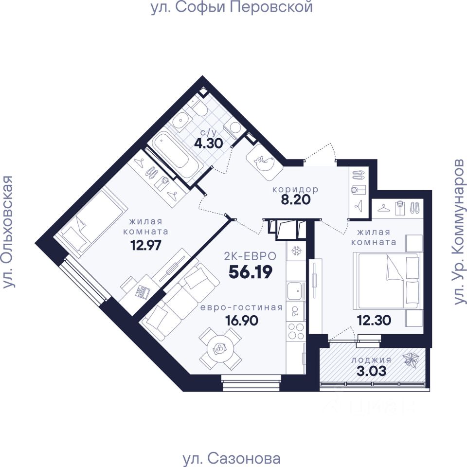 Общая площадь56,19 м²