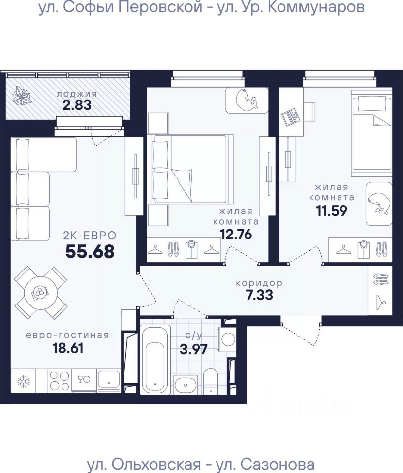 Общая площадь55,68 м²