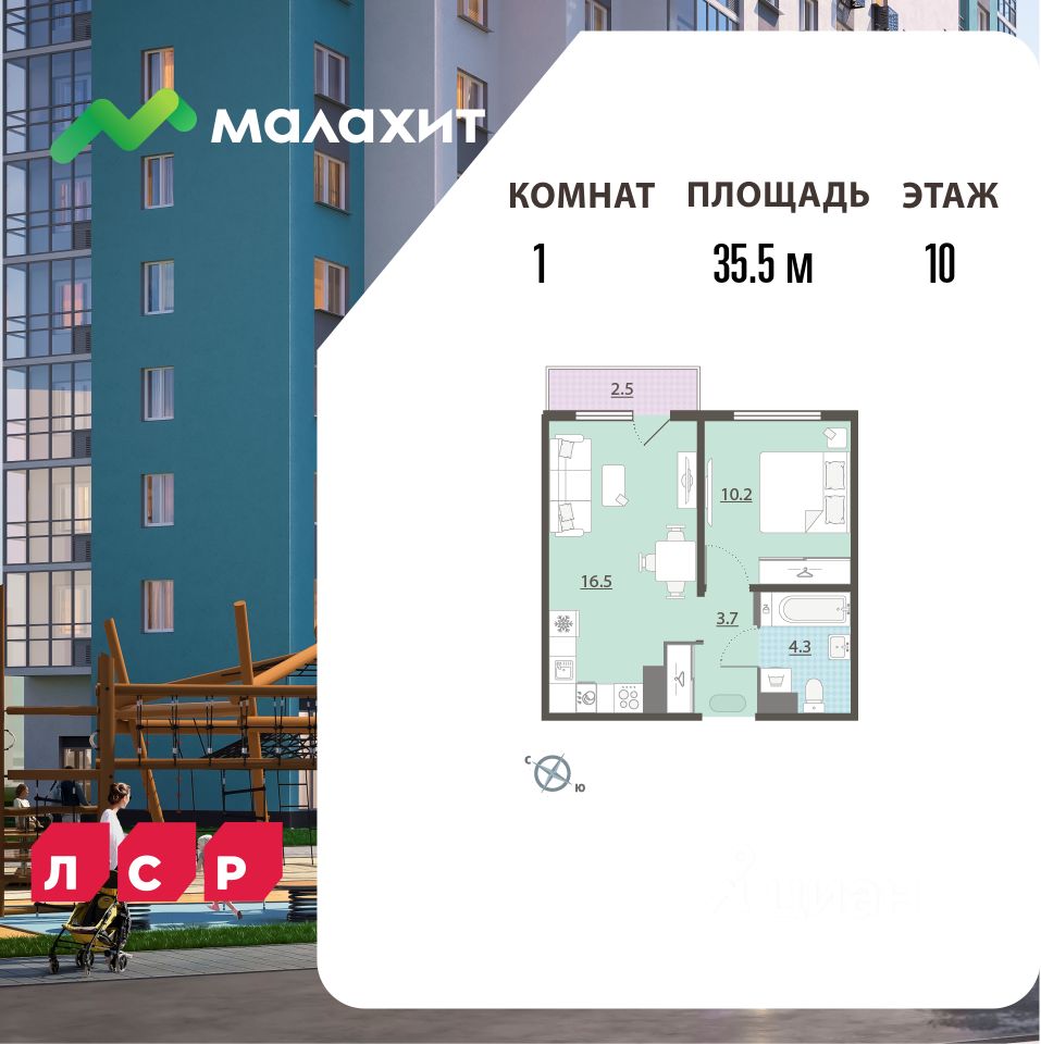 Квартира располагается на 10 этаже 15-этажного дома в ЖК Малахит.