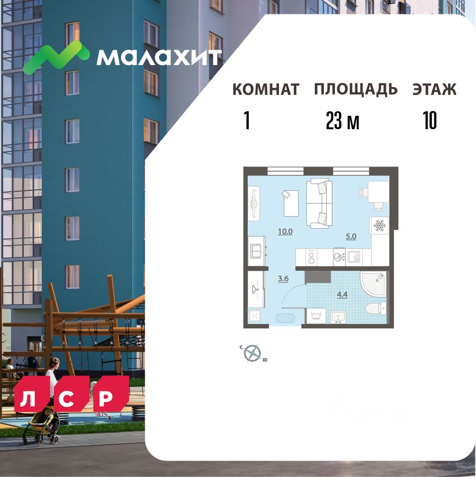 Квартира располагается на 10 этаже 15-этажного дома в ЖК Малахит.