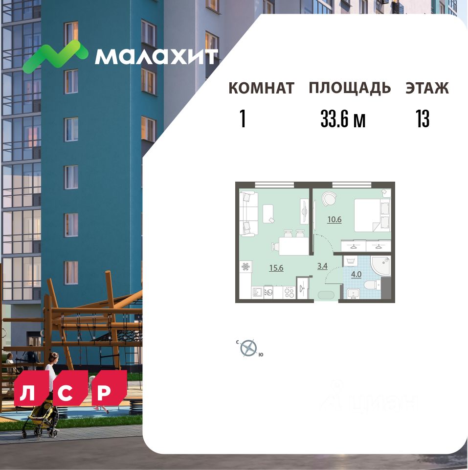 Квартира располагается на 13 этаже 15-этажного дома в ЖК Малахит.