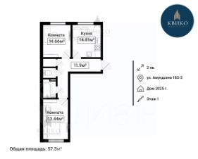 - уникальная планировка: жилые комнаты 15,00 м2 и 14,41 м2, кухня-гостиная - 11,84м2
