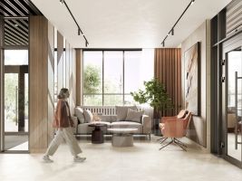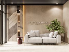 Стильное лобби Современника мы выполним в эстетике contemporary: минимализм, сочетание дерева со штукатуркой и тёмным металлом, зеркала, витражи. Обстановка из мягкой мебели, растений и книг.