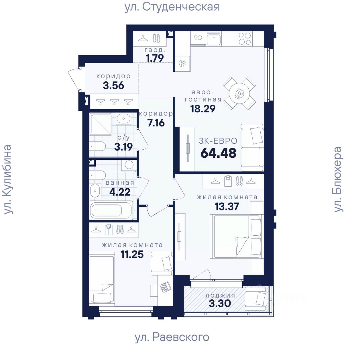 Общая площадь64,48 м²