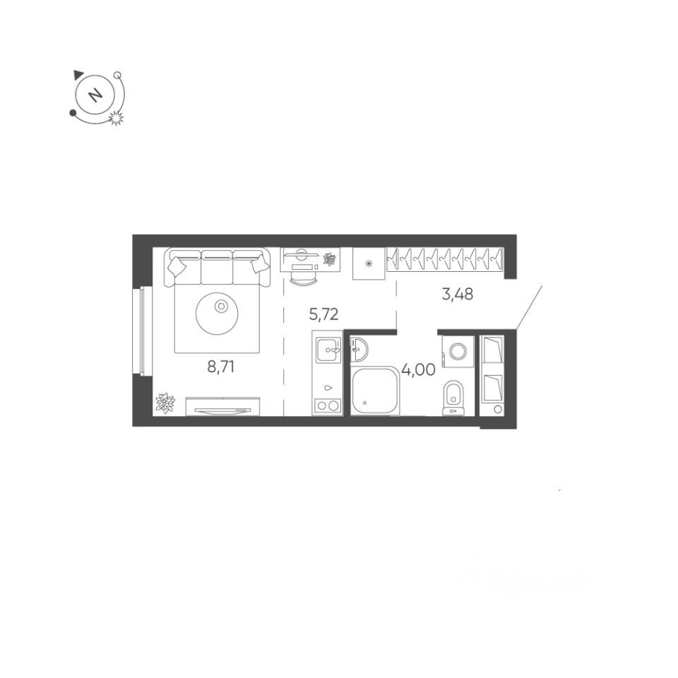 Продаётся студия в строящемся доме (Дом 5), срок сдачи: IV-кв. 2027, общей площадью 21.91 кв.м., на 23 этаже. Проект застройки включает 9 жилых домов, 3 надземных многоуровневых паркинга почти на 900 машино-мест и встроенный детский сад для 165 детей. Общая площадь квартир составит порядка 90 тыс. кв. м, под коммерческие помещения отведено около 3500 кв. м. Участок имеет прямоугольную форму, что позволяет эффективно расположить все запланированные объекты и зонировать территорию. Строительство комплекса будет осуществляться поэтапно, в формате девяти очередей.