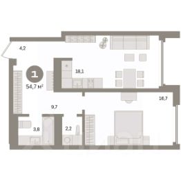 Квартира с кухней-гостиной и одной спальней в Южных кварталах. Особенности планировки: предчистовая отделка.