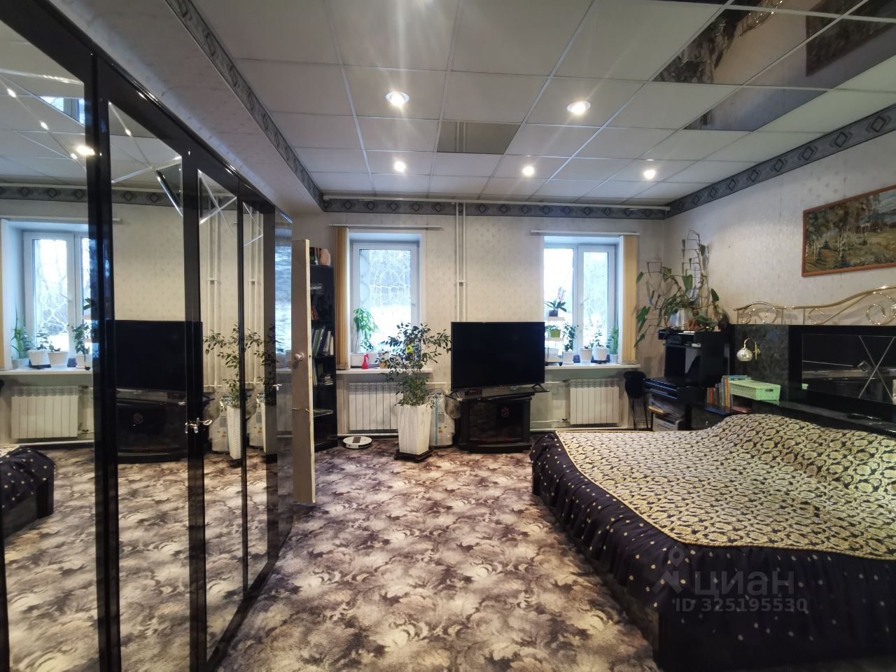 Полностью меблированная спальня: кровать евро+, 6-створчатый шкаф, тумбы и зеркала также остаются новым обладателям квартиры!