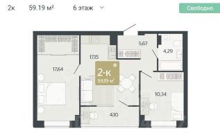 Квартира расположена на шестом этаже с отделкой класса White Box, что позволяет вам воплотить собственные идеи дизайна интерьера.