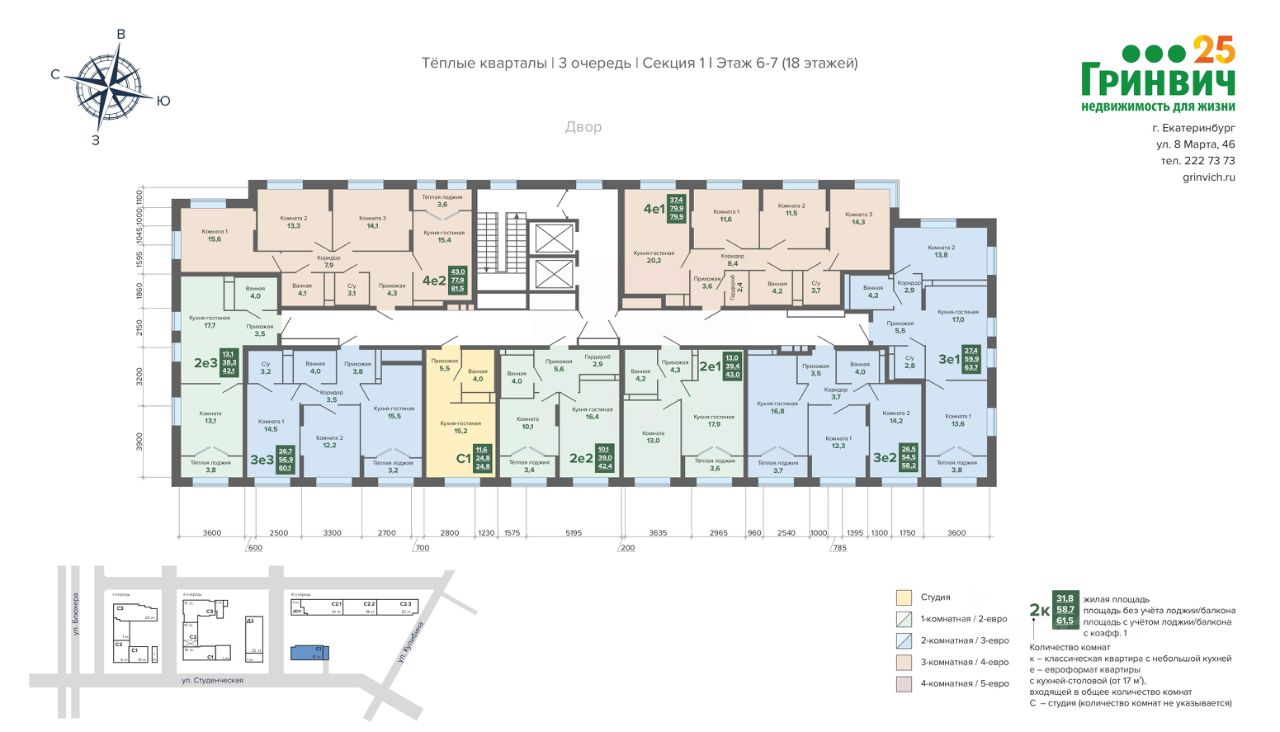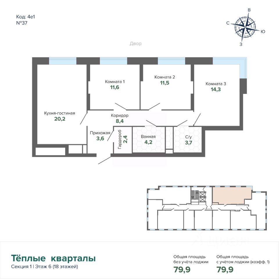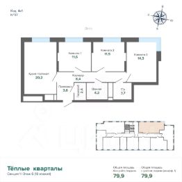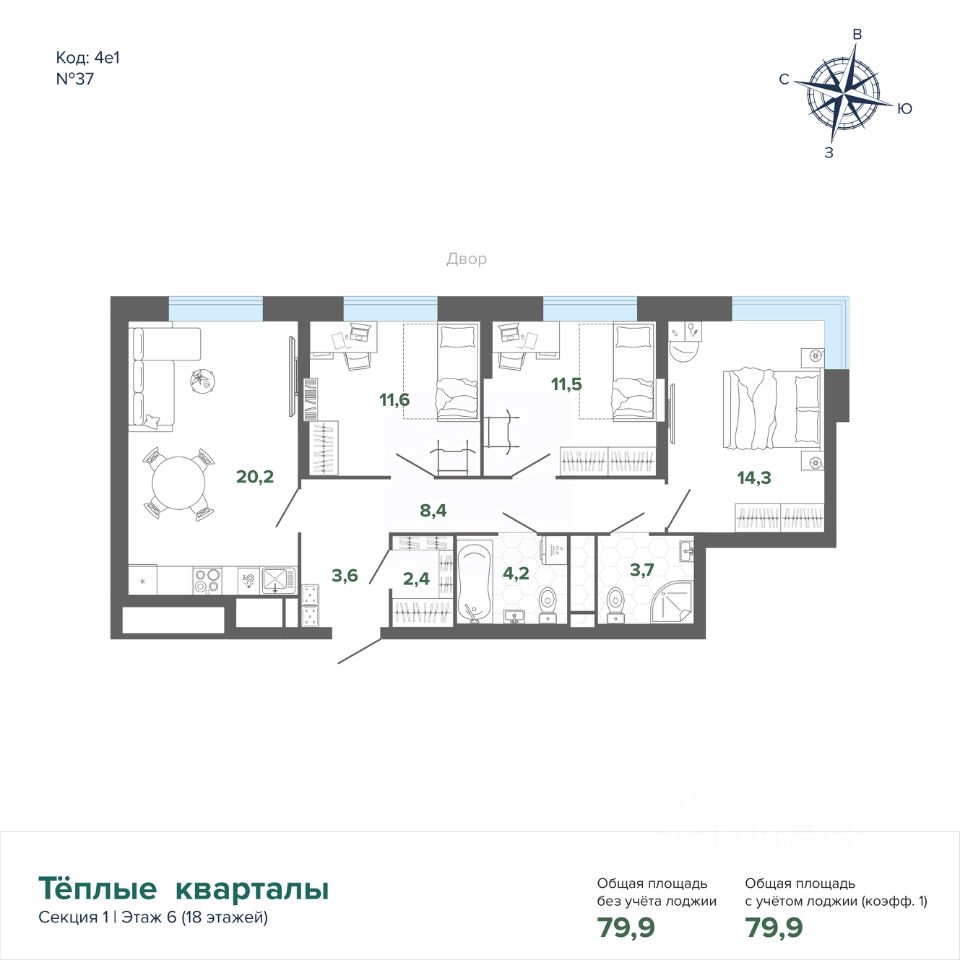 Продаётся 3-комнатная квартира в строящемся доме (3 очередь, корпус 1), срок сдачи: II-кв. 2025, общей площадью 79.93 кв.м., на 6 этаже. Семейный жилой квартал повышенной комфортности в квартале улиц Блюхера - Студенческая.Доступный комфорт для семей с детьми и тех, кто только планирует.