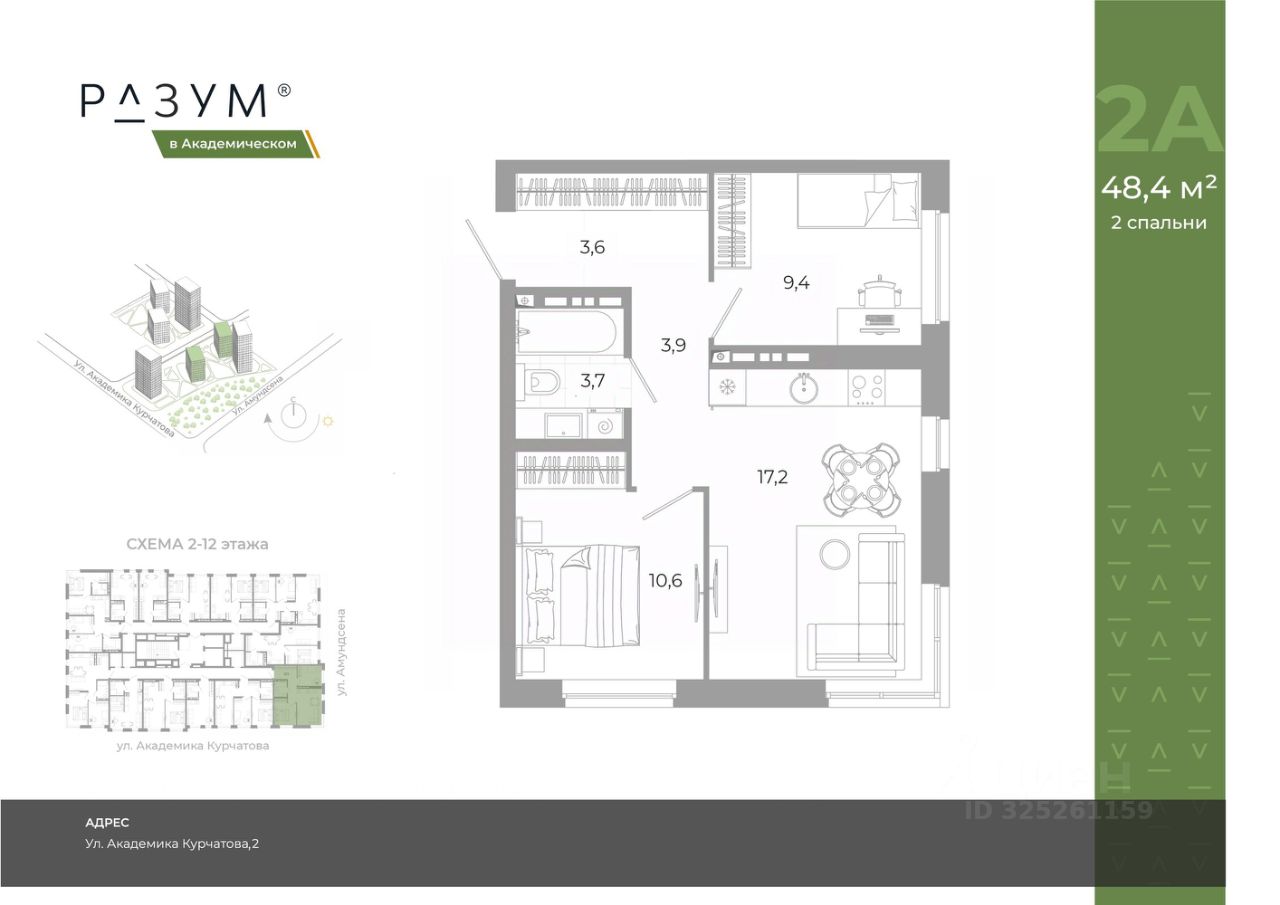 "РАЗУМ в Академическом" — это жилой комплекс из 7 домов переменной этажности от федерального девелопера "РАЗУМ" с 12-летним опытом создания жилых проектов. Дома от 12 до 24 этажей расположены в границах ул. Амундсена. В пешей доступности: - 6 школ; - 10 детских садов; - магазины; - поликлиники; - фитнес-залы. Рядом удобный выезд на ЕКАД. Главная особенность проекта — угловое остекление, которое составляет 22% всей площади. Окна в квартирах установлены в 60 см от пола. Увеличенная площадь остекления помогает снизить затраты на энергоресурсы и создаёт уют в квартире. Сердце жилого комплекса — приватный двор-парк с игровыми комплексами, тренажерами, площадками. "городские грядки" — новое решение благоустройства, где выращиваются ароматные травы или цветы. За пределами комплекса есть прогулочная зона с эко-тропой с вдохновляющими надписями. Прогулки по эко-тропе — это променады наедине с природой. "РАЗУМ в Академическом" — это: - территория без машин; - безбарьерная среда; - единый экостиль в оформлении дворового пространства; - 11 тематических зоны в двор-парке; - многоуровневое освещение и подсветка фасадов; - видеонаблюдение; - гостевой паркинг; - эстетичные подъездные холлы со сквозными подъездами и комфортной зоной ожидания; - Разделенные колясочные и велосипедные зоны; - Велосипедные на 1 этаже; - Кладовые помещения на каждом этаже и на -1 этаже. В проекте 25 планировочных решений: от уютных студий от 21,51 м² до квартир с тремя спальнями и кухней-гостиной до 66,58 м² с функциональным разделением на гостевую и приватные зоны.