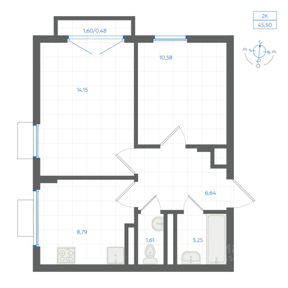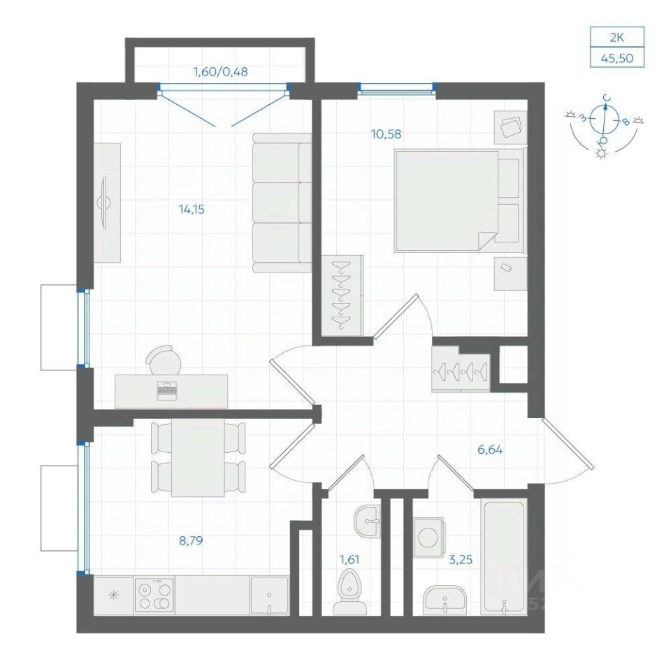 Общая площадь45,5 м²