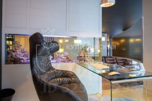 Большой морской аквариум становится визуальным центром и создаёт медитативную, успокаивающую атмосферу.
