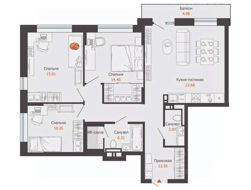 Скидка до 11% формируется при оплате наличными, либо при оформлении ипотеки у банков-партнеров по базовым ставкам В экологически чистом районе Широкой Речки, всего в 10 км от центра Екатеринбурга, продается 3-комнатная квартира площадью 88.00 кв. м. с предчистовой отделкой. Квартира находится в 4/2 корпусе жилого комплекса комфорт-класса "ЛЕС" (Застройщик - компания "Железно"). Квартал "ЛЕС" бережно расположен прямо внутри соснового бора. Все преимущества отдыха на природе ежедневно - достаточно выглянуть в окно. Наслаждайтесь уютом загородного дома с комфортом городской среды. Удобная локация в окружении природы: Половинное озеро и чистый сосновый лес в 5 минутах ходьбы; На расстоянии 1 км - автобусная остановка "Широкая речка"; В ближайшее время будет запущено строительство новых автомобильных дорог и организация дополнительных маршрутов общественного транспорта. Живой квартал у леса Лес - главный герой квартала. Дома находятся в окружении соснового бора, а их этажность - до 8 этажей - не превышает крон сосен. В новом жилом комплексе большое внимание уделено заботе о сохранении деревьев и реализации специальных программ по высадке новых, чтобы жители наслаждались прекрасной растительностью каждый день. Комфорт и Умный дом Концепция заботы о лесе и любви к природе продолжается в интерьерах лобби. Здесь преобладают мягкие естественные оттенки, а мебель выполнена из экологичных материалов, передающих естественную текстуру дерева. В каждой квартире установлен кран с питьевой водой, тепло жителям обеспечивает собственная котельная. Управлять своим домом помогает собственное мобильное приложение от застройщика - "Мажордом". Чаты с жильцами, заявки в СК Азбука, бесключевой доступ, IP домофония, оплата ЖКХ. Управляйте домом из любой точки мира в один клик! Благоустройство На территории комплекса появится открытый парк, площадью в 6,3 Га, прогулки по которому станут для жителей любимым занятием. Парковое пространство предусматривает различные сценарии для активного и спокойного отдыха: пешеходные экотропы, протяженные веломаршруты, специальные игровые и спортивные площадки, релакс-зоны и места для творчества. Все элементы благоустройства выполнены из экологичных высококачественных материалов. Отдых на свежем воздухе в приятном уединении или в кругу веселой компании друзей доступен жителям живых кварталов в любое время, когда они этого пожелают.