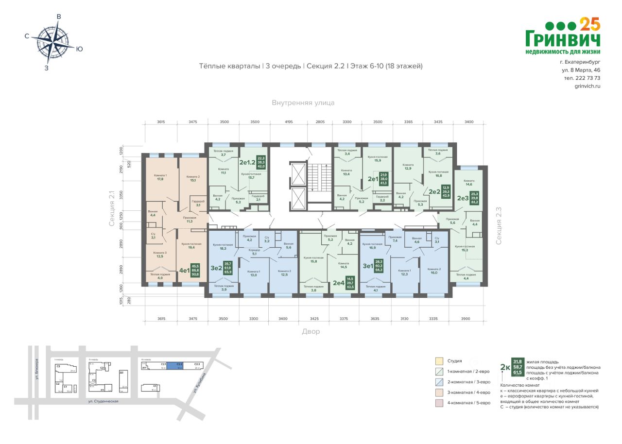 Современный семейный ЖК "Теплые кварталы" - новый жилой комплекс повышенной комфортности на границе Втузгородка и Пионерского района (перекресток ул. Блюхера/Студенческая). Теплые кварталы для тех, кто думаете о комфорте своем и близких. Срок сдачи дом 2 (3 очередь) - 2026 год. Материнский капитал при покупке использовать можно. Теплые кварталы - квартальная застройка переменной этажности (от 7 до 25).Комплекс будет состоять из 5 очередей. В продаже 3 очередь, дом 2 - переменной этажности. Строительство уже ведется. Преимущества комплекса: - Качественная чистовая отделка позволит сразу заехать в новую квартиру, взять паузу для накопления средств на ремонт или сдать жилье в аренду без дополнительных капитальных вложений.- Собственная котельная горячая вода и отопление в любое время года по потребности жильцов!Зеленый двор без машин!- Дворы очередей соединены сквозными проходами создается единое пространство. Шумные и тихие зоны отделены друг от друга. Уютная и камерная атмосфера двора напоминает отдых за городом. Вдали от шумных улиц мегаполиса.- Подземный паркинг с лифтом до жилого этажа. - Кладовые на "-1" этаже.- Безбарьерная среда на всей территории комплекса- Одни из лучших школ города по прописке: Гимназии 43, 47 и 108; Лицей 130 Окружение: - Рядом три топовых ВУЗа: Гуманитарный Университет, Юридический Университет, УрФУ, а также СУНЦ УрФУ;- Близость озера Шарташ, Основинского парка и Дендрария располагают к ежедневным прогулкам;- Рядом с кварталом расположен ЦК Урал, где все виды спортивного и творческого развития: бассейн, футбольное поле, кружки, секции для детей и взрослых- Поблизости ТРЦ Парк Хаус и Апельсин: кинотеатр, фитнес-центр, рестораны и популярные магазины.- У дома остановки трамвая и автобуса. - Для автомобилистов - удобный выезд как в центр, так и на объездную дорогу. О доме: - Механическая вентиляция - круглогодичная бесперебойная работа вентиляции!- Дизайнерская отделка холлаКолясочная в холле- Эргономичные планировки с максимальным полезным пространством: квартиры с мастер-спальнями; удобное зонированием на кухню и гостевую зону в кухне-гостиной; ниши для шкаф-купе и гардеробные в прихожих; окна на 2 и 3 стороны в многокомнатных квартирах- Качественная чистовая отделка: Ламинат 32 класса, обои под покраску, потолок обои, балконная дверь с остеклением, санузлы - умывальник со смесителем, унитаз. Счетчики на э/э, воду и тепло ежемесячная экономия на коммунальных платежах;- Горизонтальная разводка систем отопления свободные стены.