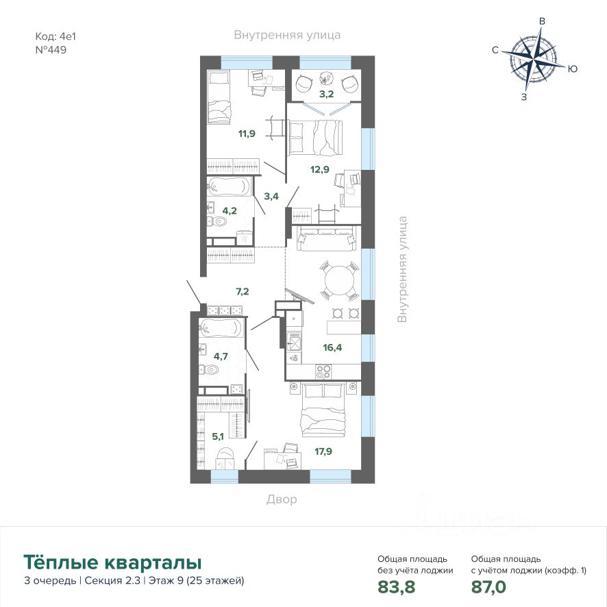 Теплые кварталы - квартальная застройка переменной этажности (от 7 до 25).Комплекс будет состоять из 5 очередей. В продаже 3 очередь, дом 2 - переменной этажности. Строительство уже ведется.