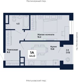 Продаётся 1-комнатная квартира в строящемся доме (Дом 8,9), срок сдачи: I-кв. 2029, общей площадью 44 кв.м., на 8 этаже. ЖК "Космос" - современный жилой квартал на проспекте Космонавтов 7, который строит ГК "Ривьера Инвест Екатеринбург". Жилой комплекс - это пять домов, благоустроенная территория комплекса и наземная парковка. Места общего пользования также выполнены в единой стилистике "космической" темы, используемой и в оформлении холлов, и дворов.