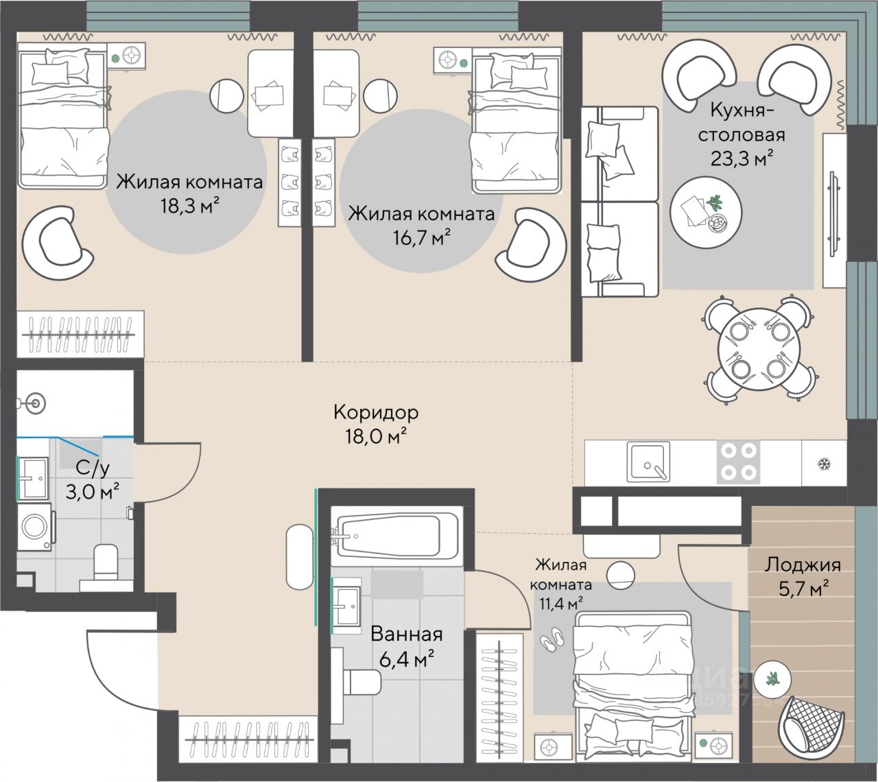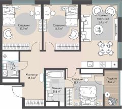 Продаётся 3-комнатная квартира в сданном доме (Нагорная, 16 (Секции 2.1-2.2 этап 1.2)), срок сдачи: III-кв. 2025, общей площадью 100.3 кв.м., на 3 этаже.