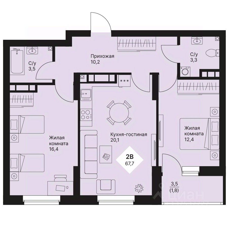 Общая площадь67,65 м²