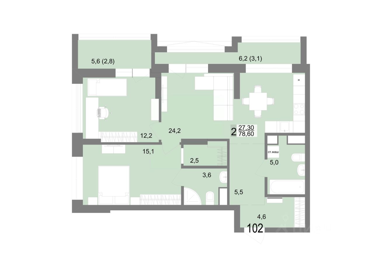 Общая площадь78,6 м²