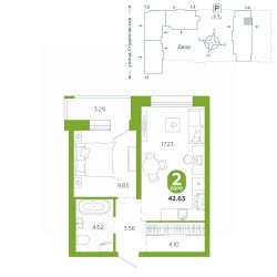 площадь квартиры - 42,63 кв.м
