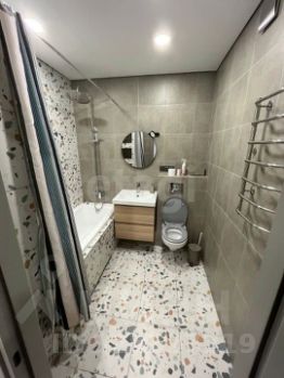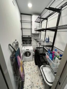 Санузел выполнен в современном стиле и совмещен для максимального удобства. Также в квартире имеется отдельное помещение, которое можно использовать как постирочную или кладовку, что добавляет дополнительное удобство в быту.