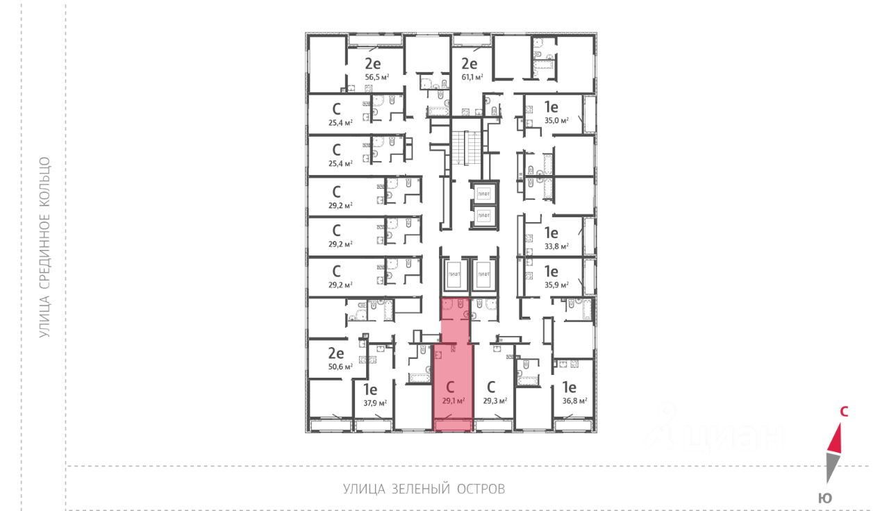 Квартира располагается на 2 этаже 25-этажного дома в ЖК Зеленый остров.
