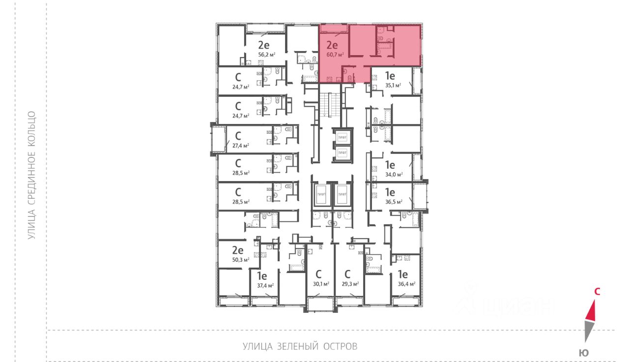 Квартира располагается на 10 этаже 25-этажного дома в ЖК Зеленый остров.
