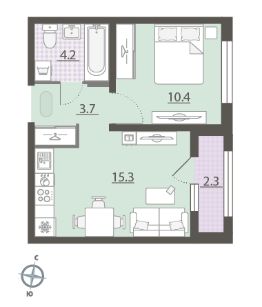Жилая площадь 10.4 м2, кухня 15.3 м2, чистовая отделка. Раздельных санузлов - нет, балконов - нет, лоджий - 1.