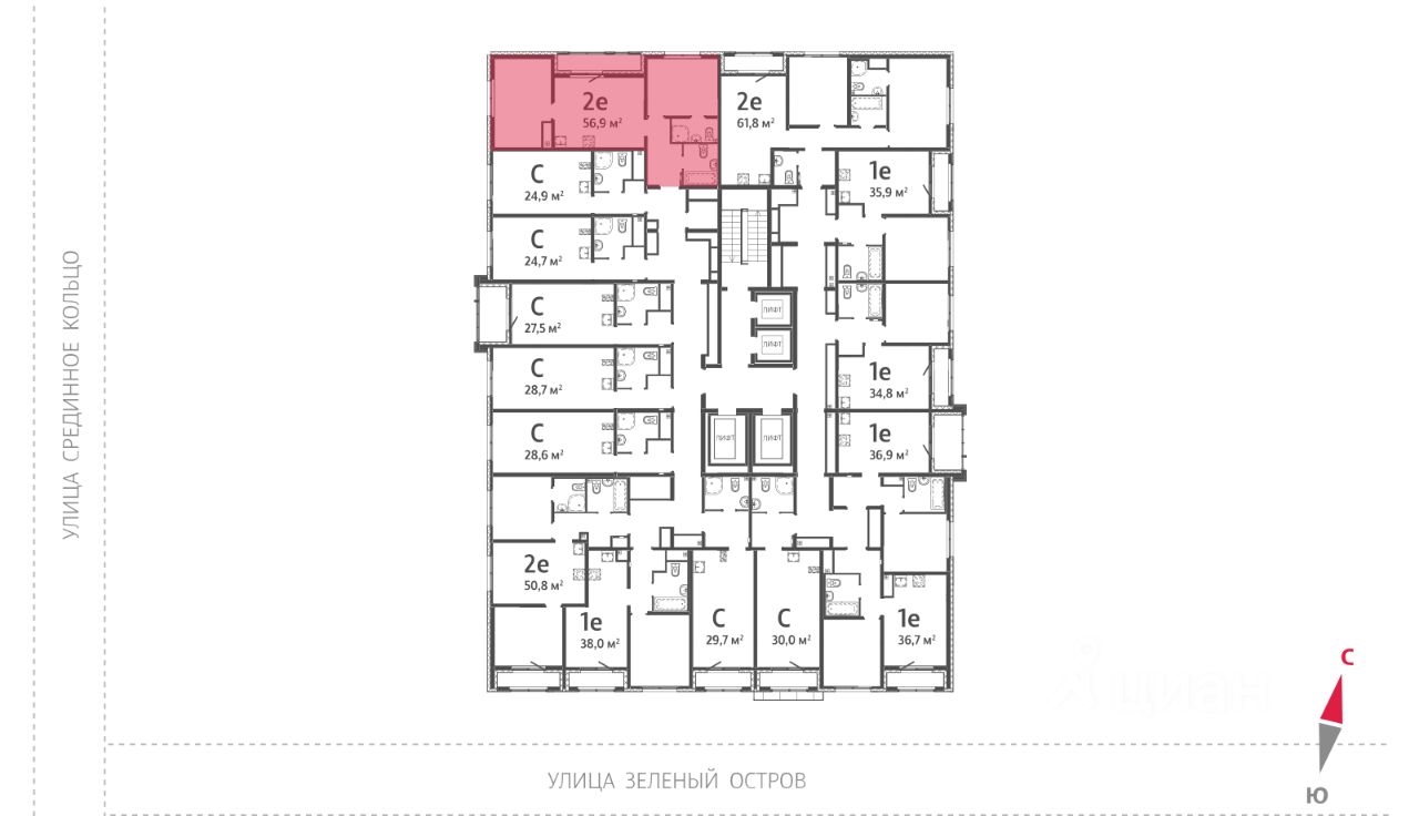 Квартира располагается на 25 этаже 25-этажного дома в ЖК Зеленый остров.