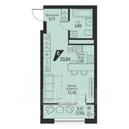 Общая площадь33,84 м²