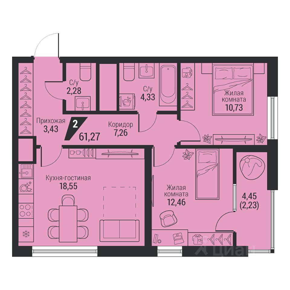Общая площадь61,27 м²