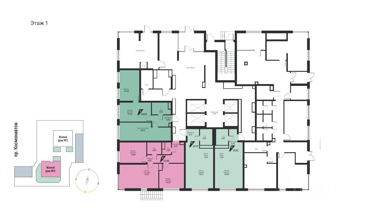 Жилой квартал "К100" на Космонавтов, 100 будет состоять из трех монолитно-кирпичных домов, объединенных общим двором. Застройщик компания "Практика". Планировки начинаются от 44,8 м² и доходят до 159,5 м². На каждом этаже располагается от восьми квартир классического и евроформата от двух до пяти комнат. Застройщик предлагает два вида отделки: white box и чистовую. Есть возможность перепланировки. Двор с ландшафтным озеленением разделен на три зоны. Для детей игровые площадки с меловыми досками и уличными шахматами, для взрослых лаунж-зона с креслами и столиками для отдыха, для спортсменов воркаут-площадка. На первом этаже лобби-клуб с игровыми комнатами, залом для йоги, коворкингом и мини-кинотеатром, колясочные и велосипедные помещения. Для автомобилистов предусмотрены гостевые места и подземный паркинг с доступом на лифте. На всей территории жилого комплекса установят видеонаблюдение. В доме будет работать консьерж-сервис в режиме 24/7. Дополнительные услуги включают клининг, выгул домашних животных, доставку еды из ресторанов и вызов такси. Также предусмотрена система "Умный дом". Рядом с жилым комплексом находятся сосновый бор, школы, детские сады, медицинские учреждения, торговые центры и супермаркеты, остановки общественного транспорта и станция метро. В шаговой доступности от дома откроется новый корпус уникальной гимназии "Арт-Этюд" — многопрофильного центра общего и художественного образования для детей от 3 до 18 лет. Строительство первой очереди жилого квартала "К100" на Космонавтов, 100 завершится в четвертом квартале 2026 года.